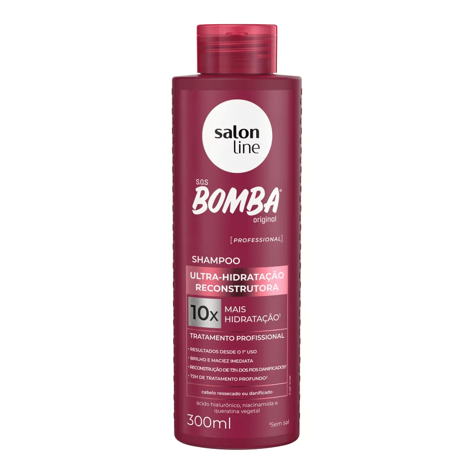O Shampoo S.O.S Bomba Ultra-Hidratação Reconstrutora garante 10x mais hidratação, brilho, maciez imediata, além de reconstrução de 73% dos fios danificados e tratamento profundo por até 72h. Resultado profissional com eficácia comprovada.